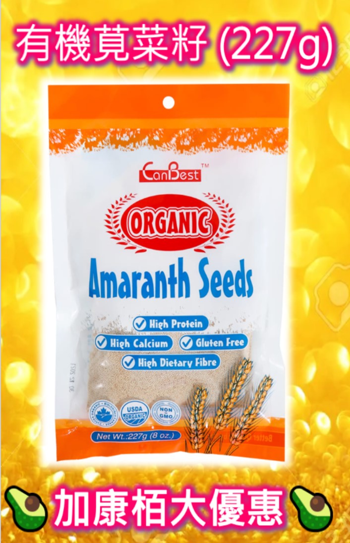 有機莧菜籽含鐵質、鈣質,透明麩質,高纖、高蛋白,可加入不同豆類煲什豆湯。